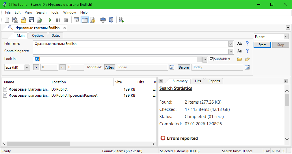 В free-версии функция индексирования недоступно, поэтому каждый раз при таком поиске программа будет сканировать все файлы заново, что может заметно замедлять работу системы.