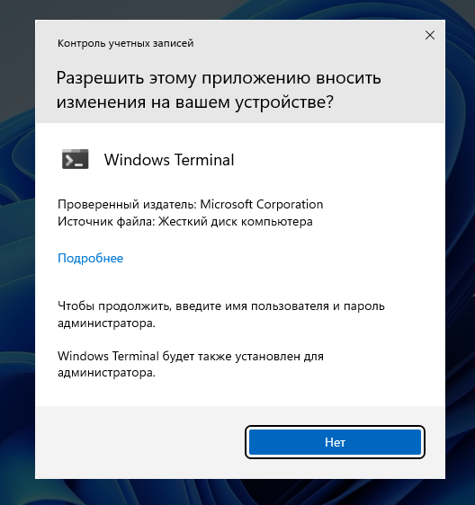 Догадаться о причине такого поведения системы нетрудно, причина формулируется тут же в окошке UAC.