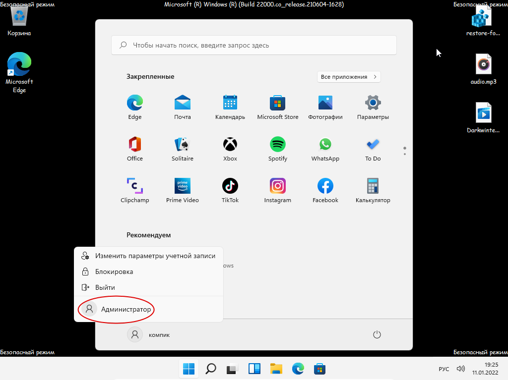 Нажмите «Перезагрузить» и включите безопасный режим, в котором активированная служебная учетная запись Администратора должна стать доступной на экране входа в систему.