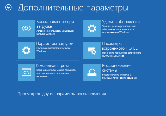 Поэтому сразу после выполнения команды активации вернитесь на экран выбора действий и в дополнительных параметрах выберите опцию «Параметры загрузки».