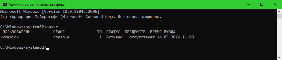 Символ > перед именем пользователя означает текущий активный сеанс, из которого была выполнена команда. Это совершенно нормально. Если в списке есть еще одно знакомое имя без значка >, это означает, что пользователь просто не вышел из системы. Это также норма.