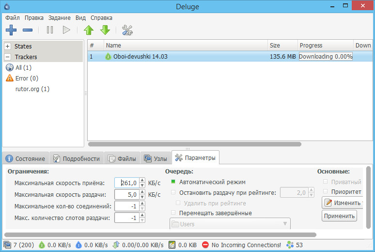 В остальном Deluge во многом напоминает µTorrent. Возможности приложения включают скачивание и создание торрентов, настройку параметров соединения, определение каталогов для сохранения контента, сортировку загрузок.