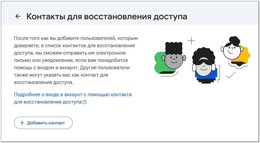 Что такое функция «Контакты для восстановления»