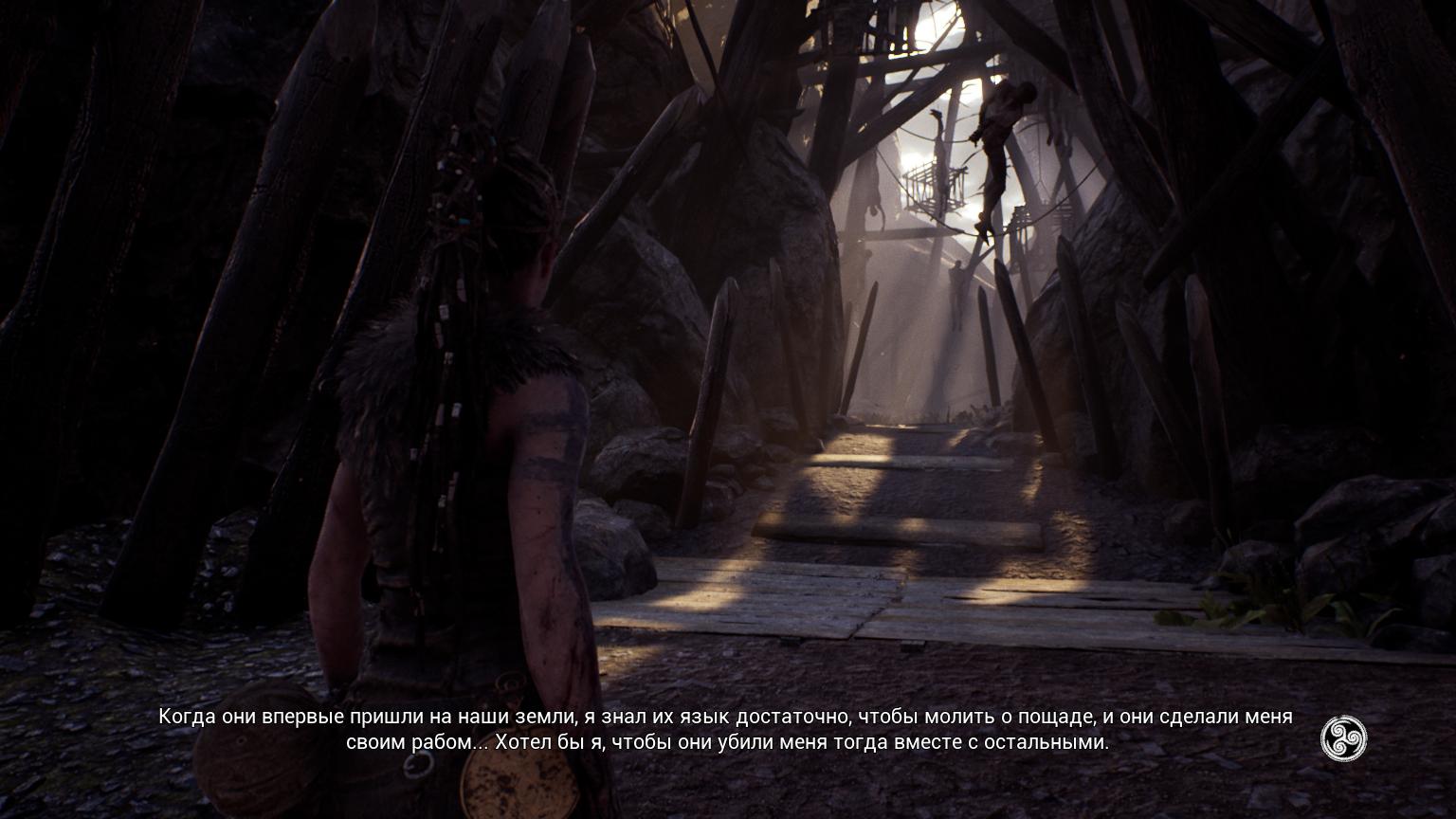 То же самое можно сказать о сражениях. В Hellblade: Senua’s Sacrifice есть несколько разновидностей врагов, но все они за исключением редких, но впечатляющих боссов, ведут себя однотипно, так что очень скоро вы начнёте предугадывать их всегда одинаковую тактику нападения и выходить из сражений с минимальным уроном. Ударов в игре всего три: сильный и лёгкий мечом и пинок ногой, есть ещё магический трюк – замедление времени, когда Сенуа может наносить противникам серию ударов без какого-либо риска быть атакованной. Да и сами враги не отличаются особым умением владеть оружием, если они и побеждают, то числом.