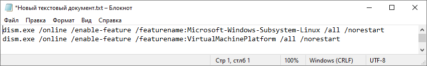 dism.exe /online /enable-feature /featurename:Microsoft-Windows-Subsystem-Linux /all /norestart