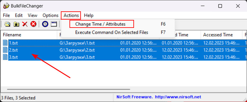 Ещё одна бесплатная утилита, способная изменить дату и время создания, изменения и последнего доступа файла – BulkFileChanger. Из мощнейшего арсенала административных утилит известного проекта NirSoft.