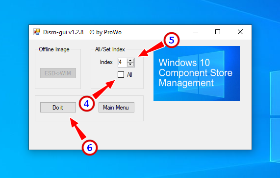 Теперь в окошке DISM-GUI снимите птичку с чекбокса «All», укажите номер индекса извлекаемой редакции и запустите процедуру конвертирования кнопкой «Do it».