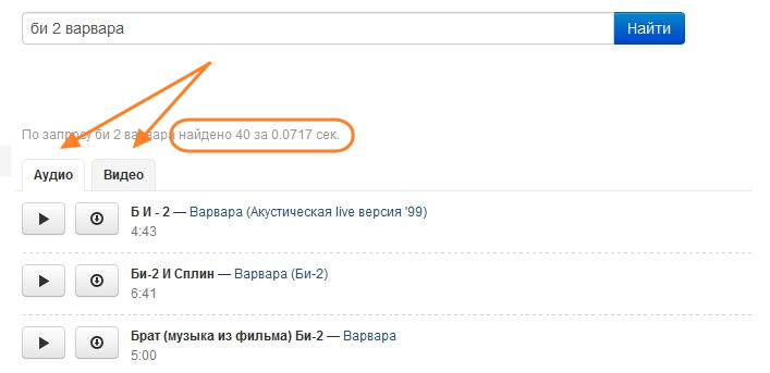 Поиск запрошенного вами аудио файла mp3 осуществляется по музыкальным порталам от мала до велика. И тут же вам предоставляются варианты искомого вами трека. Искать можно не только по названию или исполнителю, но и по словам присутствующих в песне. Затем прослушиваем трек онлайн и скачиваем на свой ПК. Одновременно осуществляется и поиск видео файлов на You Tube соответствующих вашему запросу.