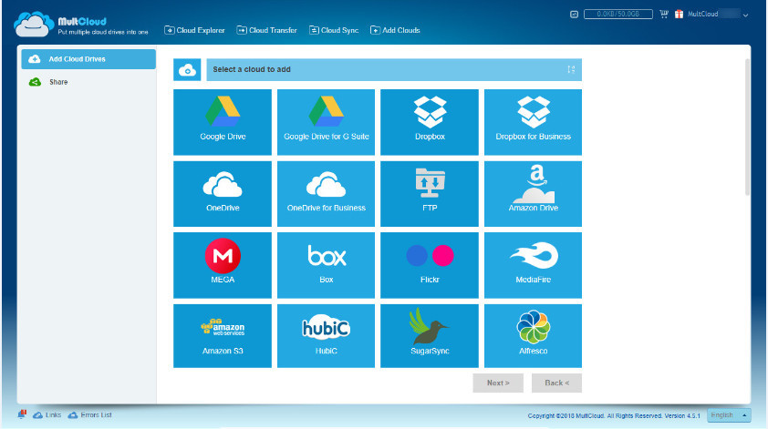 Среди поддерживаемых сервисом облачных хранилищ — Google Drive, MEGA, Box, Flickr, MediaFire, OneDrive, HubiC, SugarSync, Alfresco, Яндекс.Диск и еще десяток других, имеется поддержка протоколов WebDAV и FTP. MultCloud укомплектован удобным интерфейсом в виде Проводника, дополнительно поддерживается предпросмотр некоторых типов файлов.