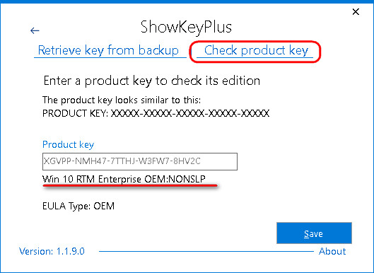 ShowKeyPlus умеет экспортировать информацию в файл TXT, восстанавливать активацию из резервной копии системного реестра, а также может нам поведать о версии, редакции и типе лицензии Виндовс по любому введённому ключу.