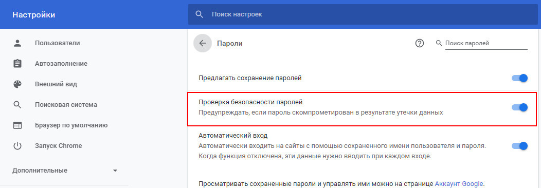Готово, новые параметры вступят после перезапуска обозревателя. Удостовериться в том, что функция активна можно в разделе настроек Chrome «Пароли», там должна появиться новая опция «Проверка безопасности паролей».