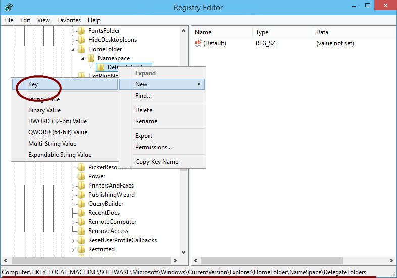 Чтобы добавить в папку Home логические жёсткие диски, создайте в последнем каталоге DelegateFolders новый ключ и назовите его {20D04FE0-3AEA-1069-A2D8-08002B30309D}.