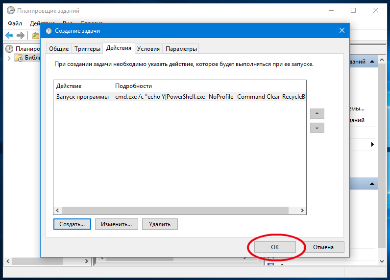 Более гибкий способ автоматизировать удаление содержимого Корзины — воспользоваться старым добрым Планировщиком заданий.