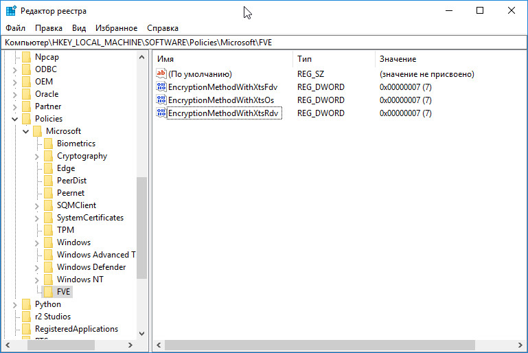 HKLM\SOFTWARE\Policies\Microsoft\FVE