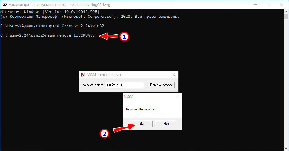 Помимо того, что вы можете остановить службу в оснастке, переведя ее в статус «Отключена», вы властны ее полностью удалить с помощью той же NSSM. Для этого в командной строке выполняем команду nssm remove имя-службы.