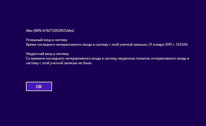 Среди многочисленных скрытых инструментов Windows 8.1 есть одна функция, благодаря которой пользователь может получить информацию о последнем входе в систему прямо на экране приветствия. Выглядит это следующим образом: после того как пользователь введёт пароль, перед ним появится информация о попытке предыдущего входа в систему.