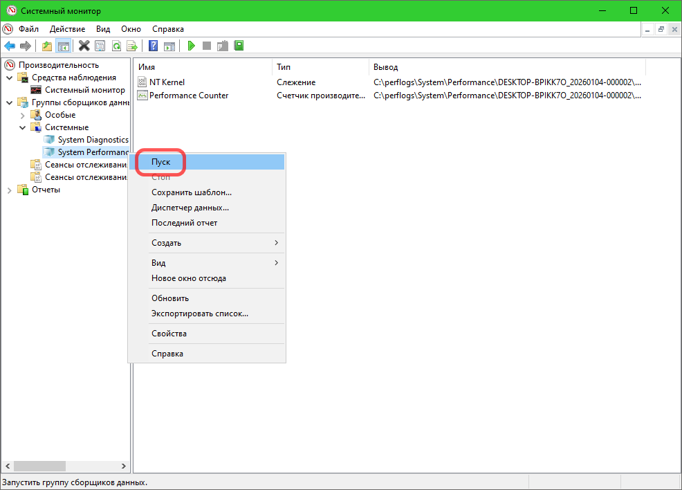 - Перейдите в раздел «Группы сборщиков данных» → «Системные» → «System Performance».