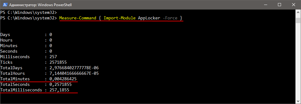 - Measure-Command { Import-Module NAME -Force } — показывает время загрузки конкретного модуля.