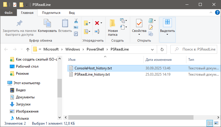 Проверьте размер файла истории команд ConsoleHost_history.txt, расположенного по адресу: