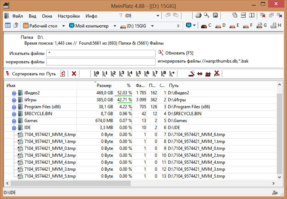 Вроде ничего не скачивалось, не устанавливалось. Вроде бы? А может…? Гадания на импровизированной кофейной гуще ни к чему не приведут. Давайте лучше установим небольшую утилиту под названием MeinPlatz и узнаем точно - какая папка занимает больше места под солнцем, а какие всего лишь крохотную часть.