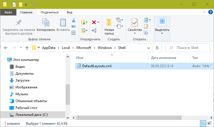 Удалите из нее файл LayoutModification.xml и перезагрузите компьютер.