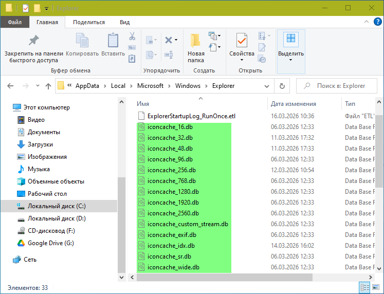 Очистка кэша иконок
