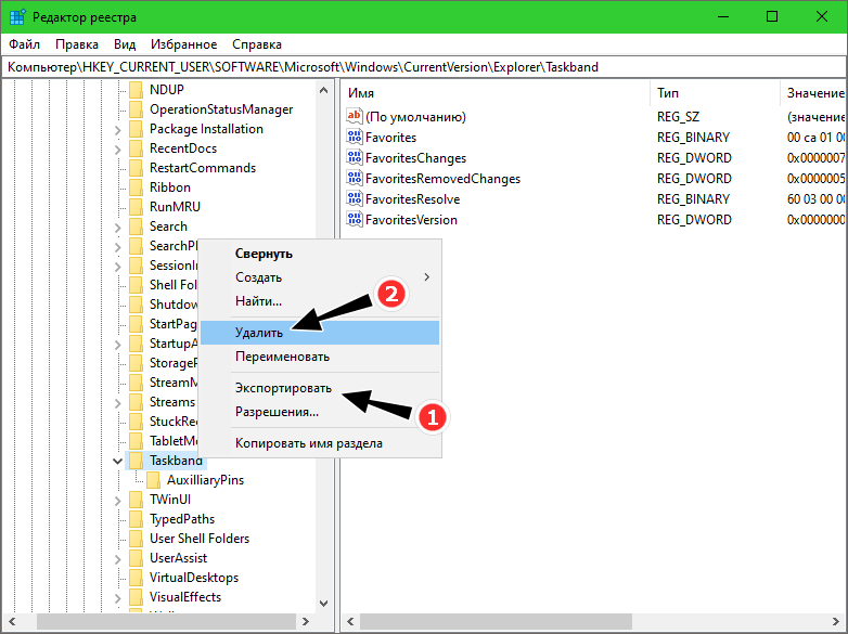 И удалите подраздел, Taskband, предварительно создав его резервную копию.