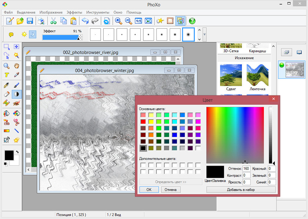 Будучи удобной и простой в освоении, PhoXo в то же время является более функциональной, чем Paint. Помимо рисования на холсте, приложением поддерживается наложение «водяных» знаков, клипарта, рамок, а также использование простых визуальных эффектов. В редакторе их более 50-ти. И хотя отсортировать их нельзя, все эффекты можно условно разделить на пять основных групп: цветовые, художественные, фильтры, искажение и оформление.