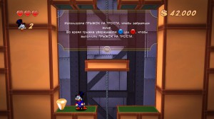 В числе приёмов старого скряги всё те же прыжки, карабкание по канатам и, конечно же, сноровистое обращение с тростью. Ею селезень разбивает сундуки, посылает в полёт камни и колотит многочисленных врагов. Кроме того, нас ждёт куча платформ, бездонных ям, тщательно укрытых тайников и вкуснейшего мороженного.