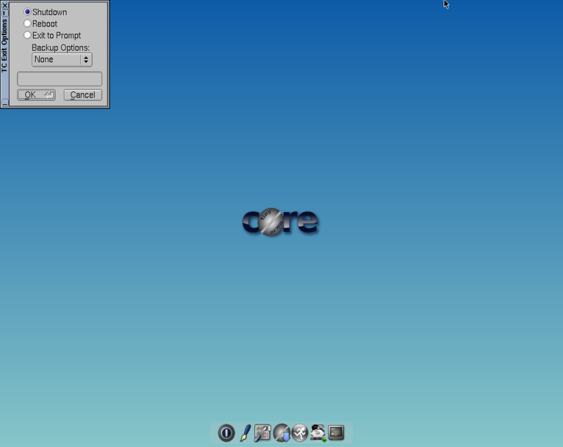 У пользователей, привыкших к современным графическим интерфейсам, первое знакомство Tiny Core Linux вряд ли вызовет много положительных эмоций. Скорее всего, таковым система покажется неудобной, а в чем-то и непонятной, главным образом и-за отсутствие привычных средств навигации и управления приложениями.