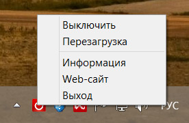 Да и еще один способ, который возможен при помощи маленькой программки. Выключение из системного трея. При нажатии по значку находящемуся в системном трейе, правой кнопкой мыши, можно выбрать команду перезагрузить или выключить компьютер.
