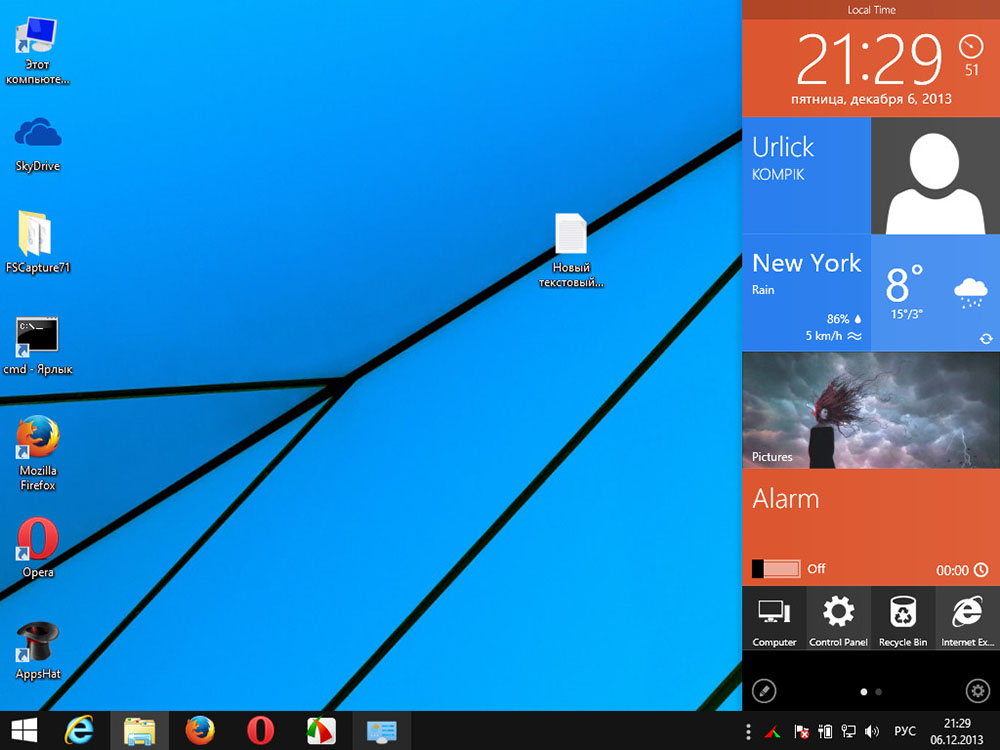 При желании в окне мастера установщика вы можете выбрать нужные компоненты (по умолчанию выбраны все). В процессе инсталляции будет создана точка восстановления, распакованы и установлены новые иконки, темы, обои, обновлен MetroSidebar. По завершении установки программа попросит перезагрузить компьютер. Изменения затронут Панель задач, системные ярлыки в «Этом компьютере», Панели управления и прочих разделах, в правой части рабочего стола появится дополнительный настраиваемый Sidebar с плитками и ярлыками быстрого доступа, границам открытых окон будет добавлен эффект тени.